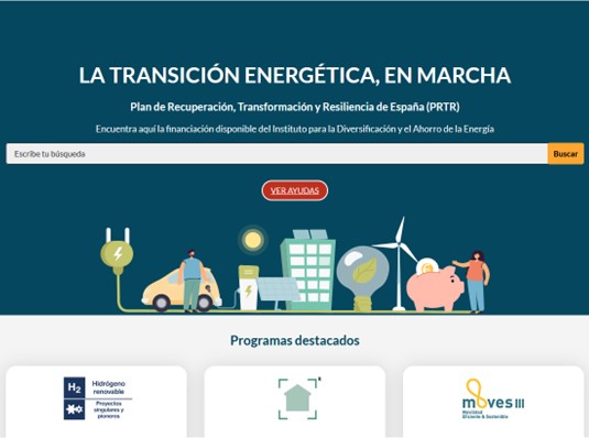 Portal web específico del IDAE con información práctica y accesible sobre las líneas de ayudas del PRTR