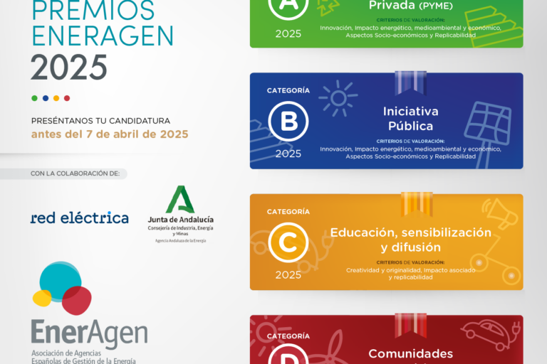 La Asociación de Agencias Españolas de Gestión de la Energía (ENERAGEN) ha convocado la XVI edición de los Premios Eneragen 2025, con los que se premia a las mejores iniciativas a nivel nacional en favor de la transición energética y suponen un reconocimiento público al compromiso de las PYMES, las administraciones públicas y las comunidades…